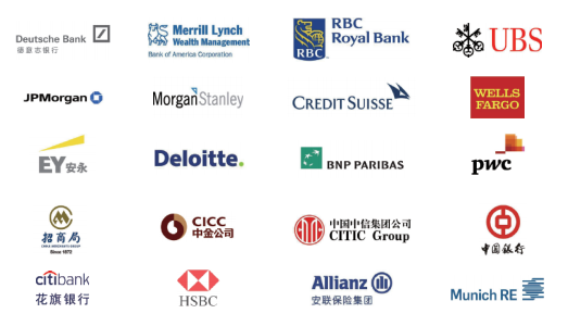 根据CFAInstitute公开的数据,海外主要金融机构都是CFA持证人的雇主:美国银行、加拿大银行、摩根士丹利、JP摩根、德意志银行、汇丰、花旗、瑞信、富国银行、高盛。国内主要金融机构也对CFA人才青睐有加:中国工商银行、中国银行、中国平安、光大、海通证券、国泰君安、四大的中国事务所、红杉资本中国公司。
