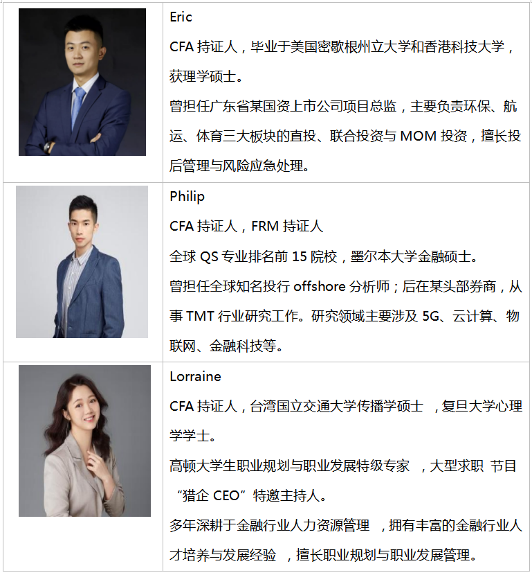 通过CFA一级考试,可比肩知名院校研一基础知识水平,企业在面对同等条件下的大学生,会优先录取有学习CFA经验的学生。以下为部分国内外认可雇主企业名单: